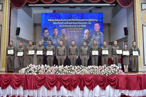 24 พฤศจิกายน 2568 พล.ต.อ.กิตติ์รัฐ พันธุ์เพ็ชร์ ผบ.ตร. เป็นประธานมอบโล่ประกาศเกียรติคุณให้แก่หน่วยงานที่มีผลการปฏิบัติงานด้านการปราบปรามยาเสพติดดีเด่น ของสำนักงานตำรวจแห่งชาติ ประจำปีงบประมาณ พ.ศ.2568...